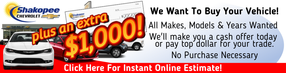 Shakopee Chevrolet Wants to Buy Your Vehicle! admin September 17, 2021 Comments ← Previous Image Next Image →